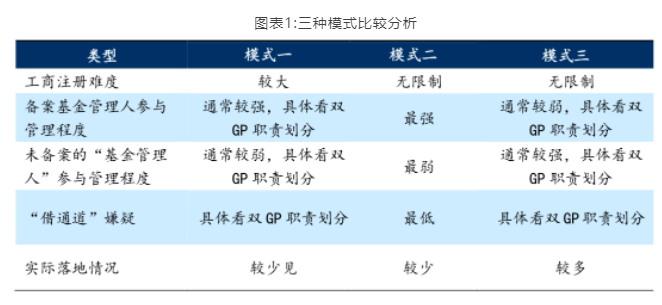 二是,對于“雙GP”模式一、“雙GP”模式二影響較小,因為上述兩張模式管理人均擔任了執行事務合伙人;